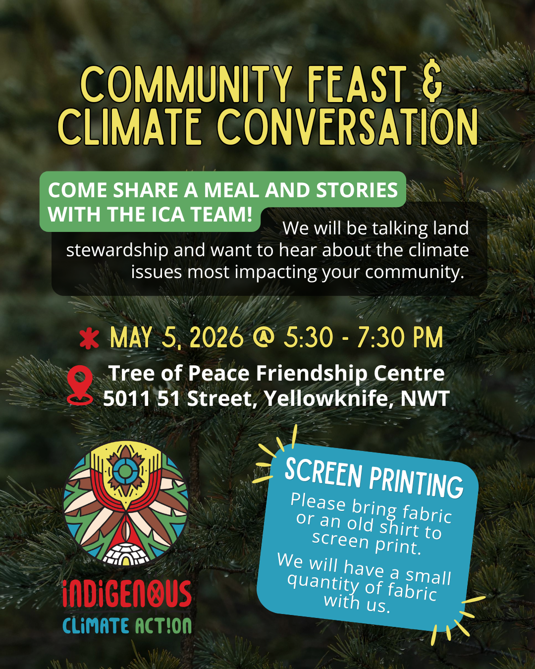 Where: Tree of Peace Friendship Centre, 5011 51 Street, Yellowknife, NWT